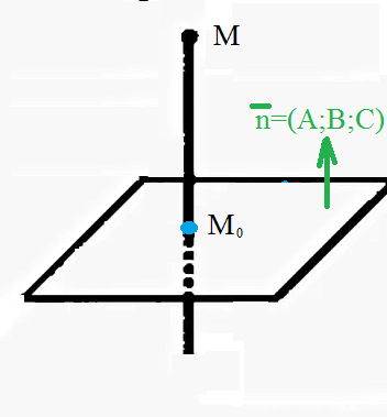 Составляем уравнение прямой, перпендикулярной данной плоскости и проходящей через точку М