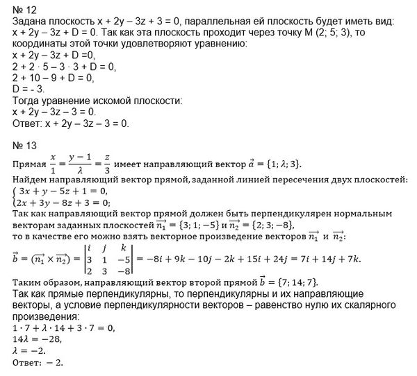 14. Проверить, что прямые пересекаются. Найти уравнение плоскости, в которой они лежат: