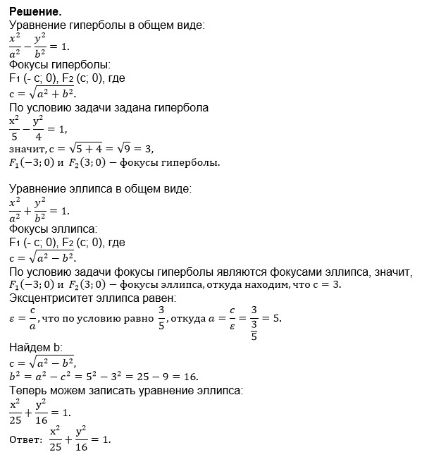 Составьте уравнение эллипса, если его фокусы совпадают с фокусами гиперболы x^2/5 - y^2/4 = 1, а эксцентриситет эллипса равен 3/5