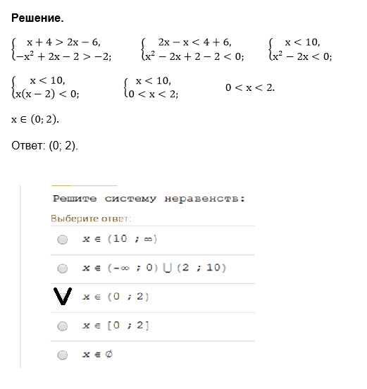 ○ x ∈ (-∞; 0) ∪ (2; 10)