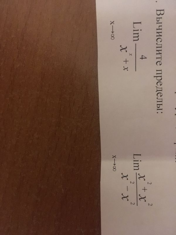 Вычислите пределы: Lim 4/(x^2 + x) x -> ∞ Lim (x^2 + x^2)/(x^2 - x^2) x -> ∞