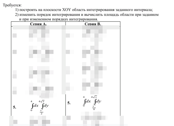 2) изменить порядок интегрирования и вычислить площадь области при заданном