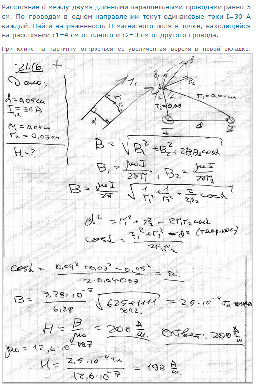 Между двумя длинными параллельными проволоками, расположенными на расстоянии 15 см друг от друга,поддерживается равновесие в разность потенциалов 1500В. Радиус проволок 1мм. Определите напряженность поля в точке, лежащей на середине расстояния между проволоками.