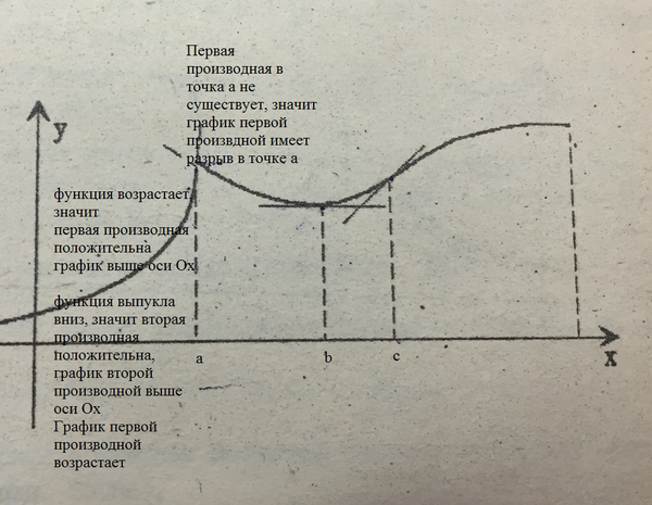 на (b;c) y` > 0 так как функция возрастает, значит график y` на (b;c) расположен выше оси Ох