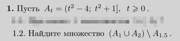 A_(1)=(1-4;1+1]=(-3;2] A_(2)=(2^2-4;2^2+1]=(0;5] A_(1) U A_(2)=(-3;5] A_(1,5)=(1,5^2-4;1,5^2+1]=(-1,75;3,25] A_(1) U A_(2) \ A_(1,5) = (-3;-1,75] U (3,25;5]