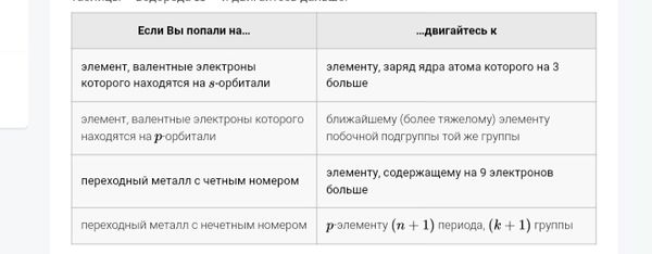Каждый элемент, в зависимости от его электронного строения и состава ядра, отправляет вас на другую клетку таблицы. Начните с самого первого элемента таблицы – водорода – и двигайтесь дальше.Каждый элемент, в зависимости от его электронного строения и состава ядра, отправляет вас на другую клетку таблицы. Начните с самого первого элемента таблицы – водорода – и двигайтесь дальше. (По таблице-подсказке)
