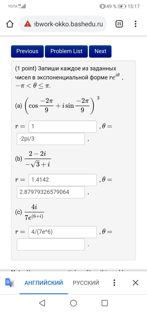 (c) [m] \frac{4i}{7e^{(6+i)}} [/m]