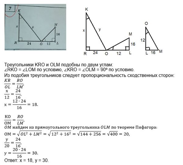 y=sqrt(18^2+24^2)=sqt(900)=30