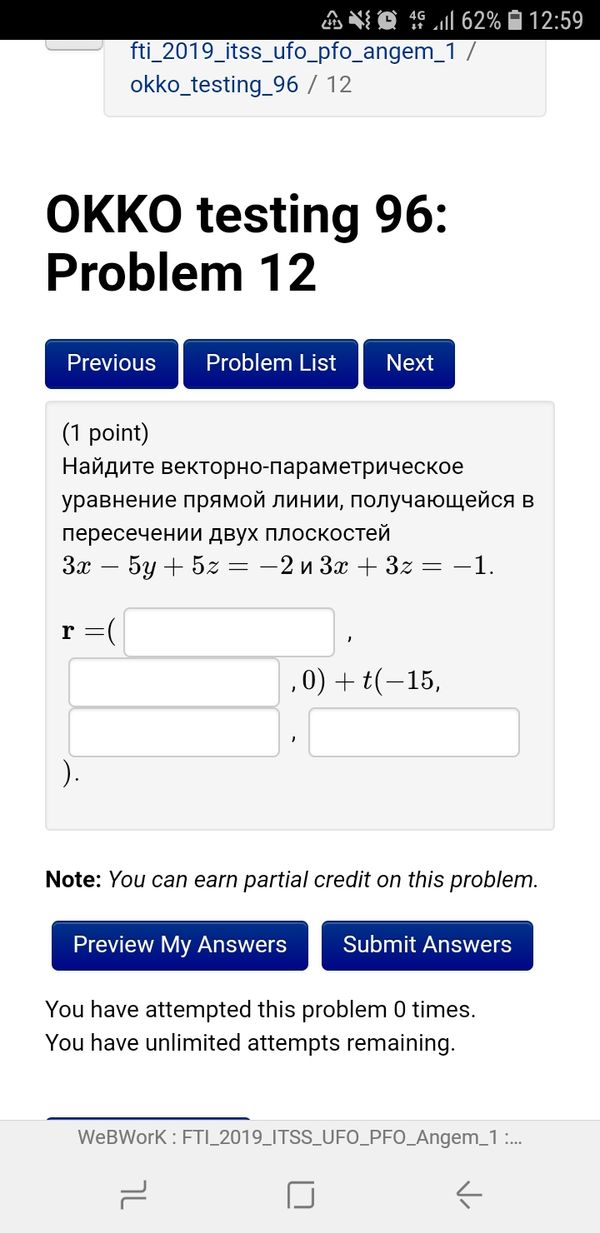=(-1/3;1/5;0)+ t*(-15; 6; 15)