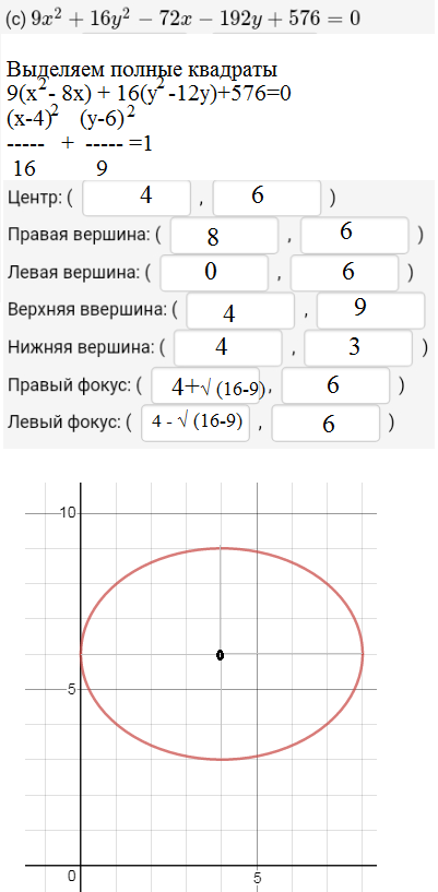 (c) 9x^2 + 16y^2 - 72x - 192y + 576 = 0