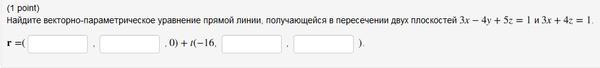 Найдите векторно-параметрическое уравнение прямой линии, получающейся в пересечении двух плоскостей [m]3x-4y+5z=1[/m] и [m]3x+4z=1[/m].