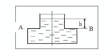 Открытый бак, состоящий из двух соосных цилиндров диаметрами d и 2d, заполнен жидкостью плотности ?, как показано на рисунке. Бак стоит на полу лифта, который поднимается вверх с ускорением a = 0,25 g. Определите силу давления жидкости на горизонтальную поверхность AB, соединяющую ба цилиндра. Атмосферное давление равно ро.