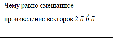 Смешанное произведение векторов равно определителю третьего порядка из координат данных векторов Но одна строка пропорциональна другой. Такой определитель равен 0