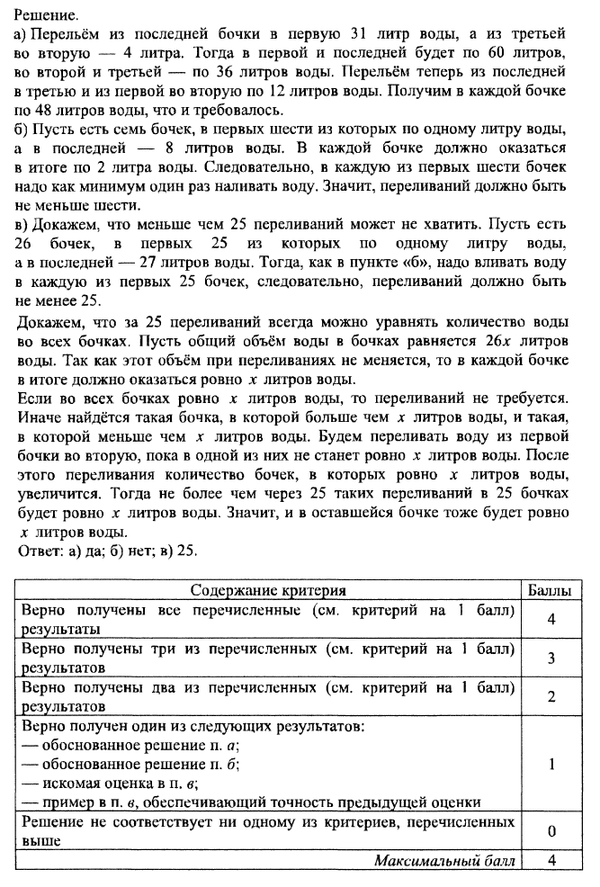 а) Пусть есть четыре бочки, в которых 29, 32, 40, 91 литров. Можно ли не более чем за четыре переливания уравнять количество воды в бочках?