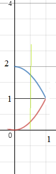 Входим в область на параболе y=x^2 ( cм. зеленую линию)