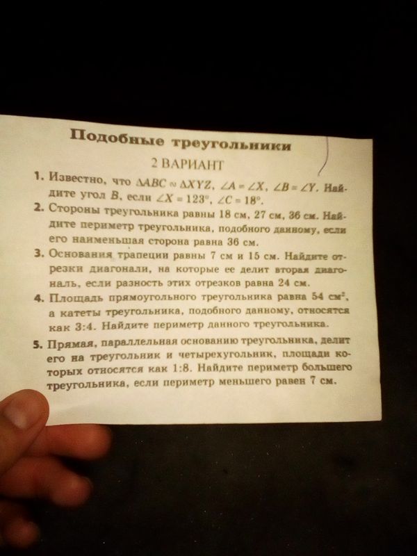 1. Известно, что ∆ABC ∼ ∆XYZ, ∠A = ∠X, ∠B = ∠Y. Найдите угол B, если ∠X = 123°, ∠C = 18°.