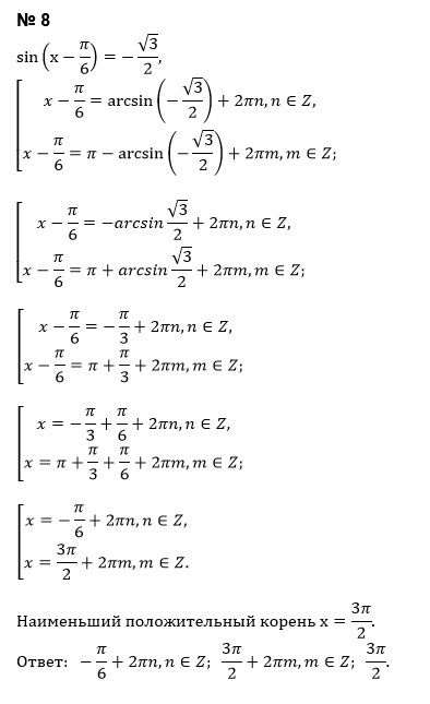 x-(π/6)=(-1)^(k)arcsin(-sqrt(3)/2)+πk, k ∈ Z