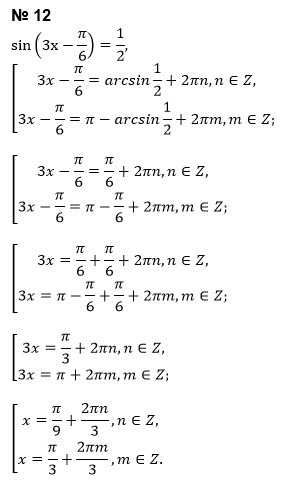 3x - (π/6)=(-1)^(k)*(π/6)+πk, k ∈ Z