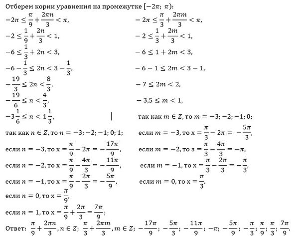 х=(π/9)+(π/3)k, k ∈ Z