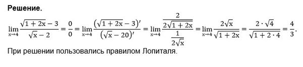 lim_(x→4)(2*(sqrt(x)+2))/(sqrt(1+2x)+3)= 2*(sqrt(4)+2)/(sqrt(1+8)+3)=8/6=4/3