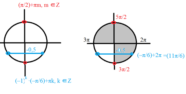 [b]x=(-1)^(k)*(-π/6)+πk, k ∈ Z[/b]