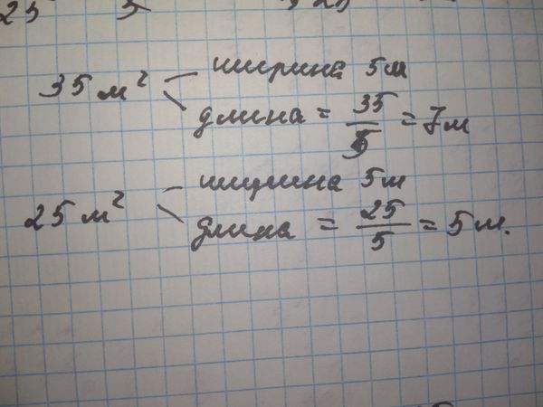 S=a*b, a=S:b=(35/25):5=(35/25)*(1/5)=7/25 (м). Ответ: 7/25 м.