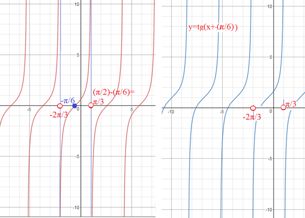 y=tg(x+(π/6)) получен из y=tgx сдвигом влево на (π/6)