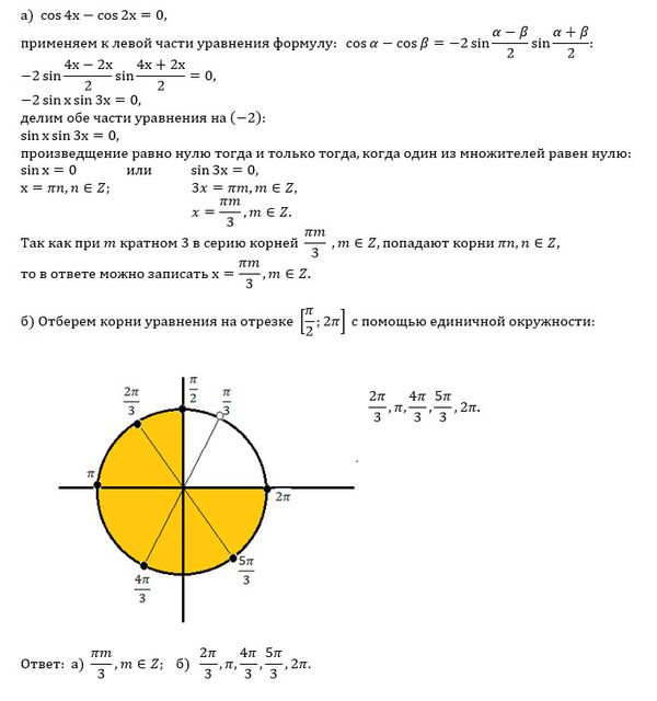 б) Отобрать корней на отрезке [Pi/2; 2Pi]