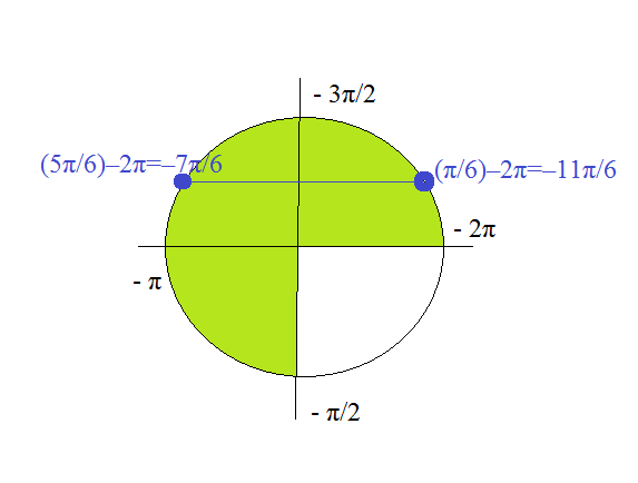Отрезку [-2π;-π/2] принадлежит корень (π/6)-2π=-11π/6