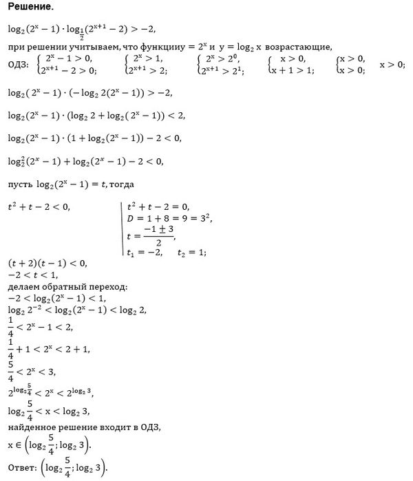 log_(1/2)(2^(x+1)-2)=log_(1/2)2*(2^x-1)= логарифм произведения