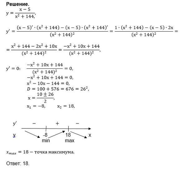y`=((x-5)`*(x^2+144)-(x-5)*(x^2+144)`)/(x^2+144)^2