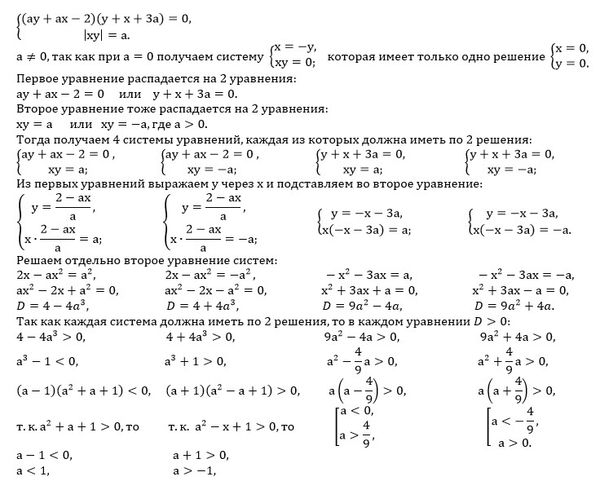 Найдите все значения a, при каждом из которых система уравнений system{(ay+ax-2)(y+x+3a) = 0;|xy| = a} имеет ровно восемь решений.