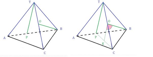 TABC - треугольная пирамида. Точки О и P - внутренние точки отрезков TC и AB соответственно. Постройте угол между прямыми TP и OB
