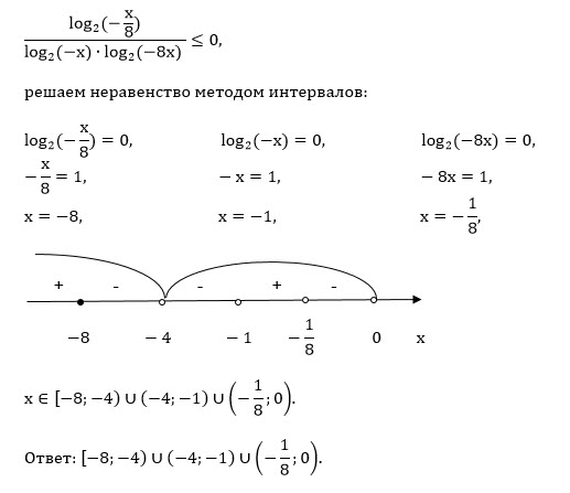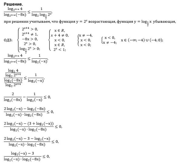 (log(2^(x+4)) 4) / (log(2^(x+4)) (-8x)) меньше или равно 1/(log2log(1/2) 2^x)