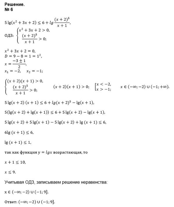 5lg(x^2+3x+2) меньше или равно 6+lg((x+2)^5/(x+1))