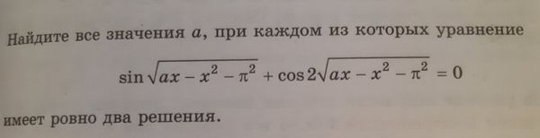 sinsqrt(ax-x^2-π^2)=-1/2 или sinsqrt(ax-x^2-π^2)=1