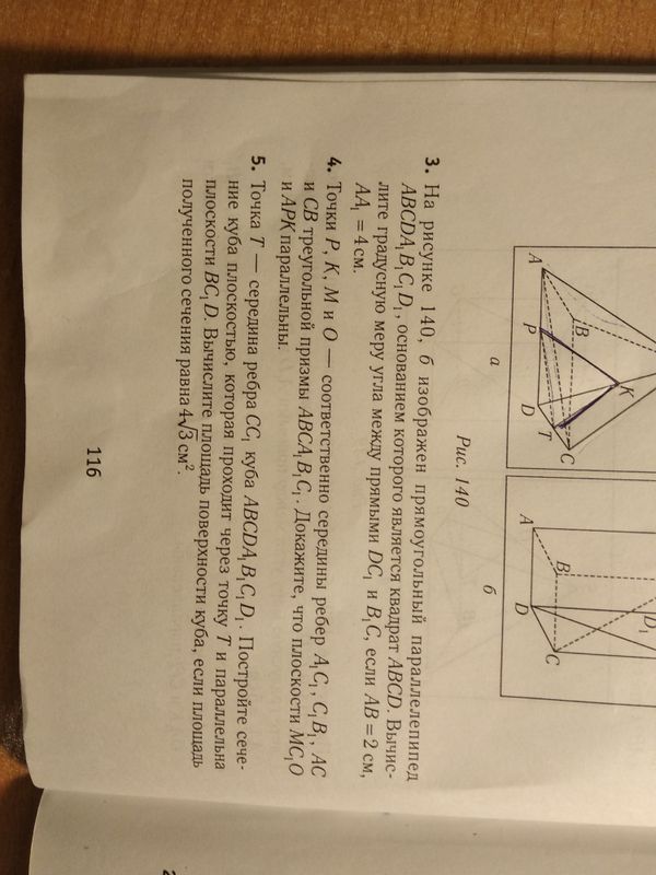 4. Точка Р, К, М и О — соответственно середины рёбер AC1, СВ1, АС и АВ прямоугольной призмы АВСА1 В1 C1 D1. Докажите, что плоскости ЛМС0 и АРК параллельны.