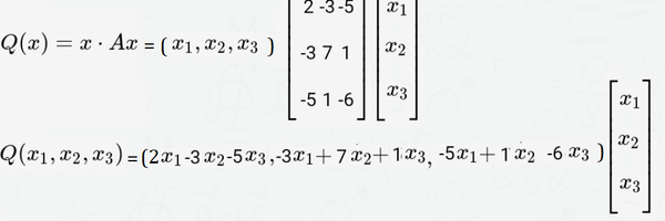 =2x^2_(1)- [b]3x_(1)x_(2)[/b]-5x_(1)x_(3)- [b]3x_(1)x_(2)[/b]+7x^2_(2)+x_(2)x_(3)-5x_(1)x_(3)+x_(2)x_(3)-6x^2_(3)=