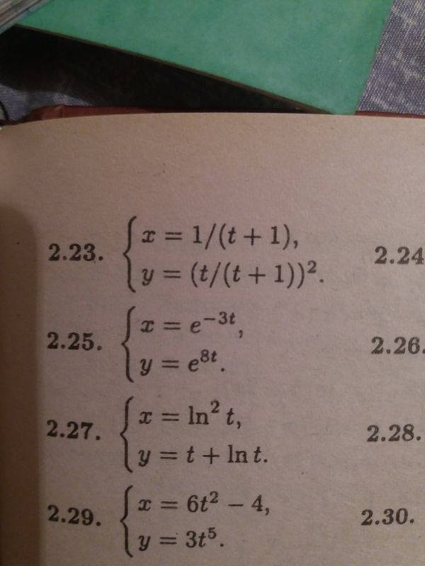 y`_(x)=y`_(t)/(x`_(t)=(2t)/(t+1)^3 / (-1/(t+1)^2)=