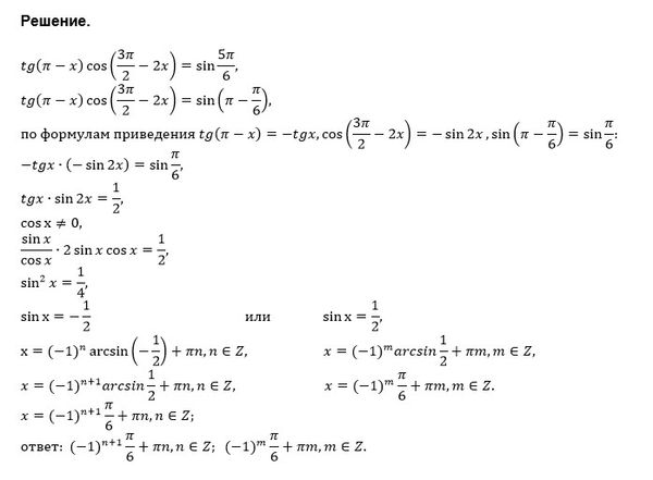 tg(п-x)cos(3п\2-2х)=sin5п\6
