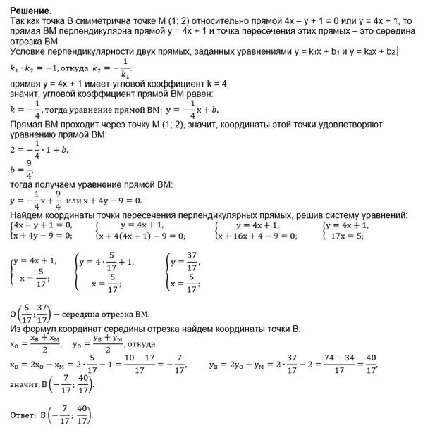 Точка B(x_(1);y_(1)) принадлежит прямой МВ, значит ее координаты удовлетворяют уравнению: