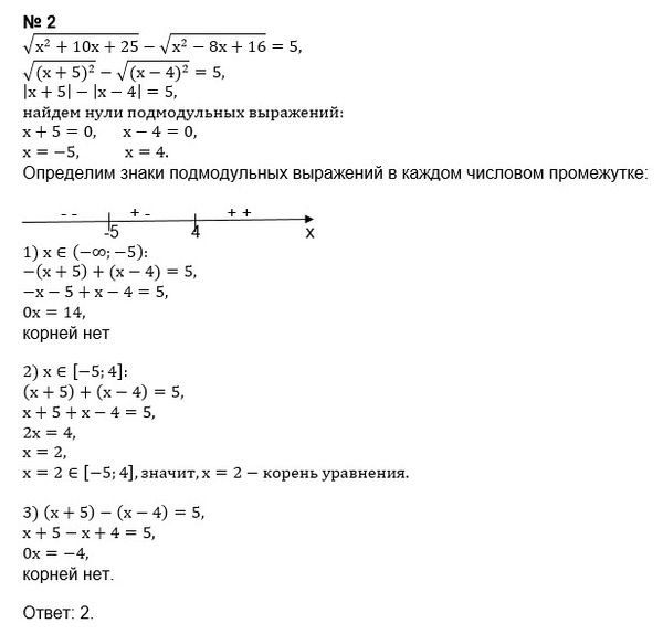 2) √(x^2 + 10x + 25) - √(x^2 - 8x + 16) = 5.