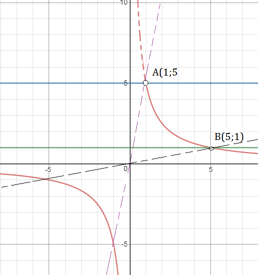 Но если прямая y=ax через точку В (5;1) - общую точку