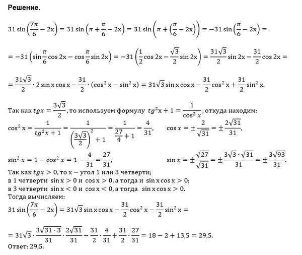 31sin((7π/6)–2x)=31*(59/62)=59/2=29,5