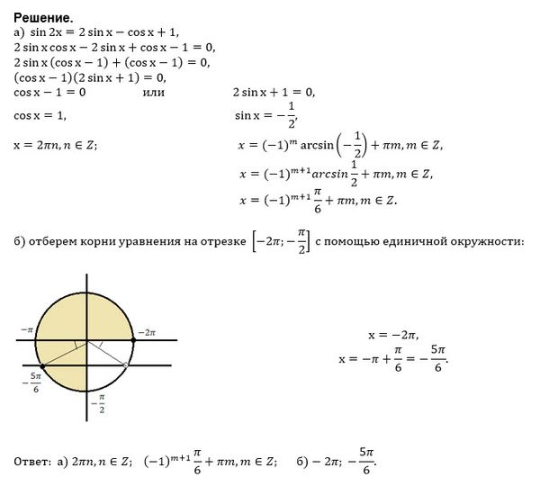 а) Решить уравнение sin2x=2sinx-cosx+1