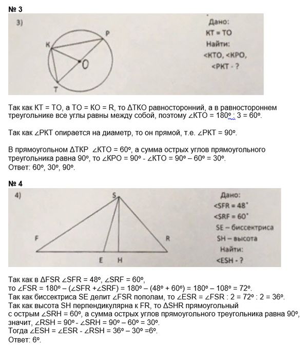3) 1) ∠ РКТ = 90, т.к. в два раза меньше развернутого угла(опираются на одну дугу)