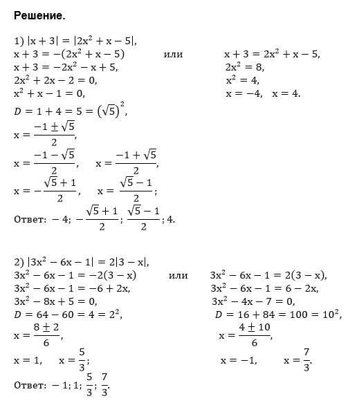 1) |х+3|=|2х^2 +х-5| 2) |3x ^2 - 6x -...