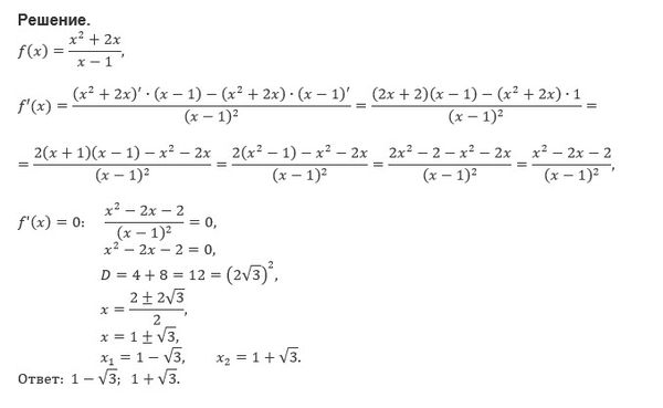 f'(x)=0. ecлu f(x)= (x^2+2x)/(x-1)