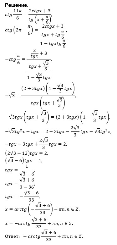 сtg 11п/6=(2сtgx+3)/tg(x+п/6)...