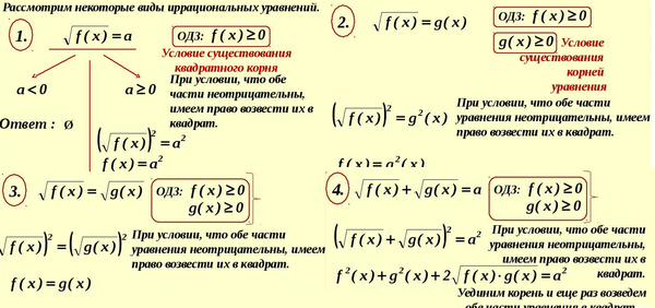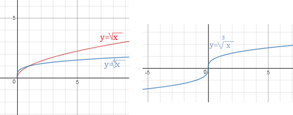 г) то же самое, только арифметический квадратный корень определен на [0;+ ∞) и принимает неотрицательные значения.
